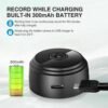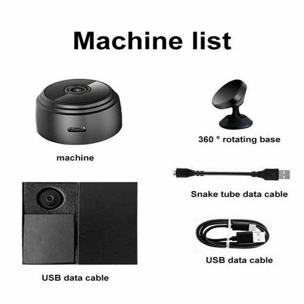Night vision & alarm push, those functions are the basis for this indoor security camera. You can not only see things in the dark- This small camera bathroom has a built-in magnet, can work well with any iron material, easily place anywhere. This small camera with a rigid charging cable and base, when charging while recording, you can manually rotate the recording angle 360 degrees.